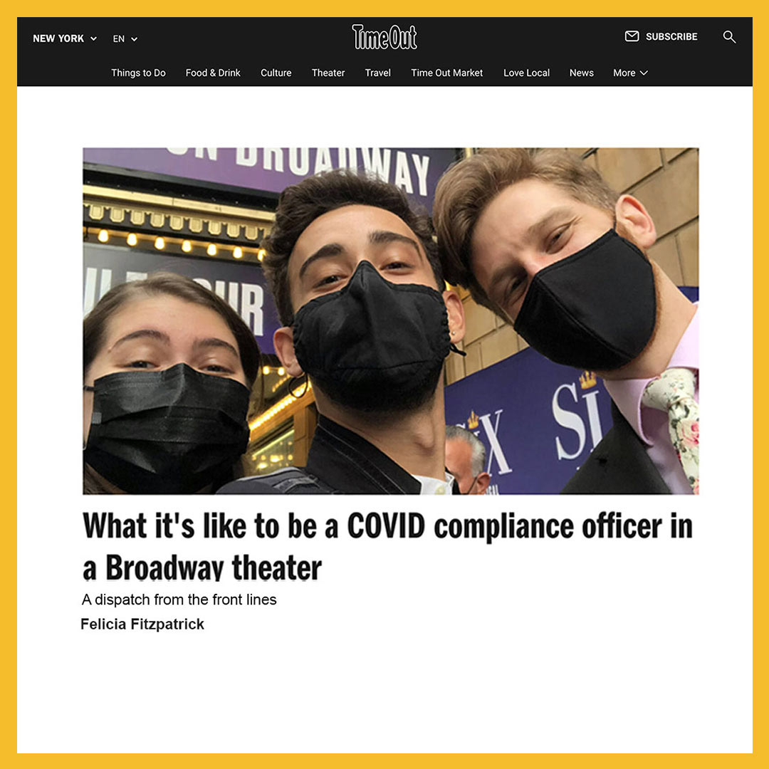 Her in-depth features include “The Oral History of The Scottsboro Boys” for Playbill, and “What it’s like to be a COVID compliance officer in a Broadway theater” for Time Out New York.
